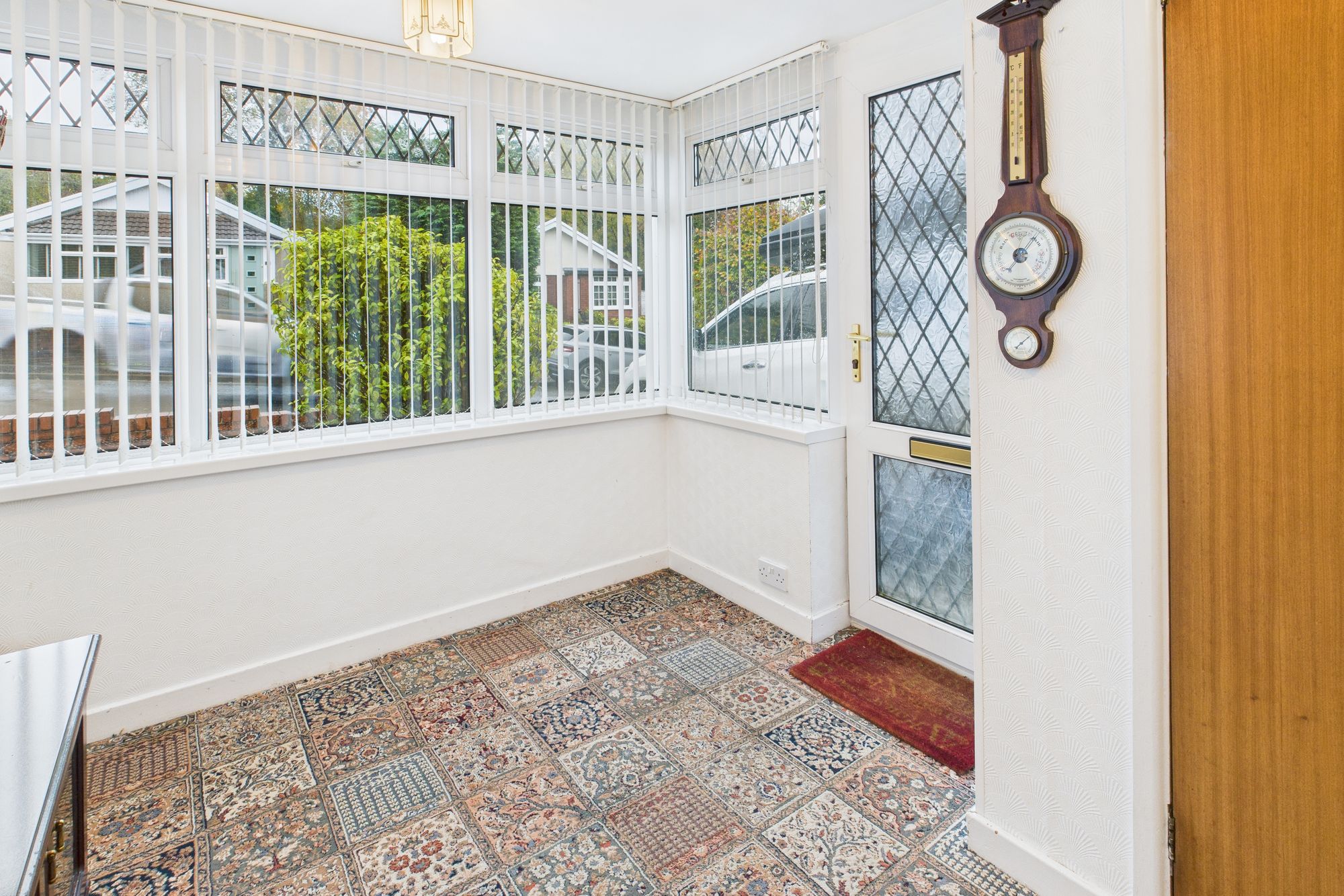 Inside, the home offers a bright and welcoming layout, with large windows providing plenty of natural light. The spacious lounge sits at the front of the property, while the accommodation further comprises spacious porch, three bedrooms, a kitchen, shower room, and conservatory – that offers views of the garden.