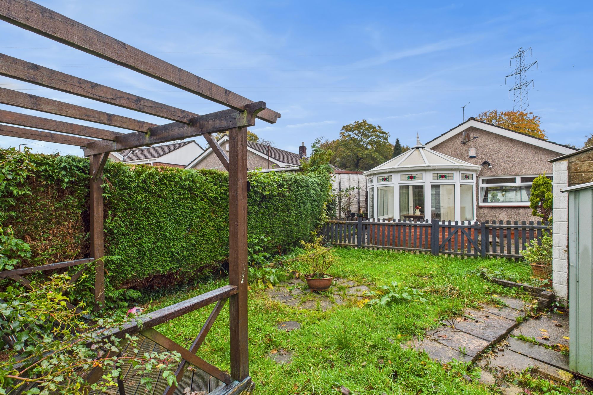 The rear of the home offers a secure outdoor space, perfect for those seeking an easy-care garden or looking to create their own landscaped retreat.