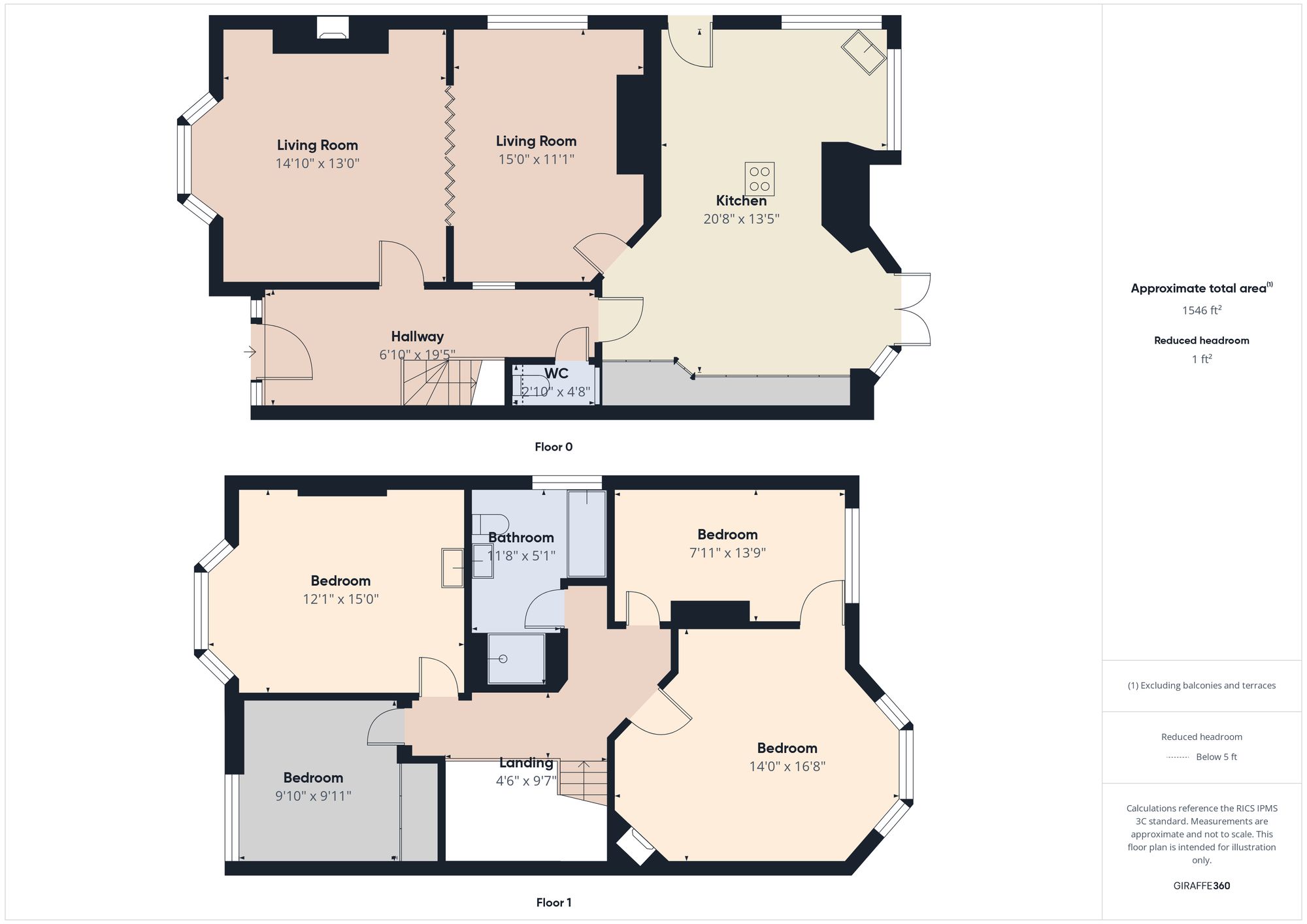 LANDING : 9' 7" x 4' 6" (2.92m x 1.37m)