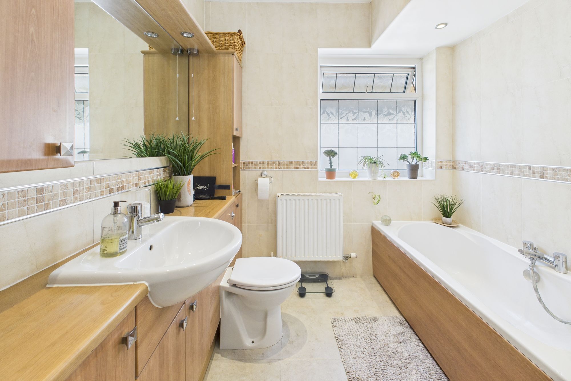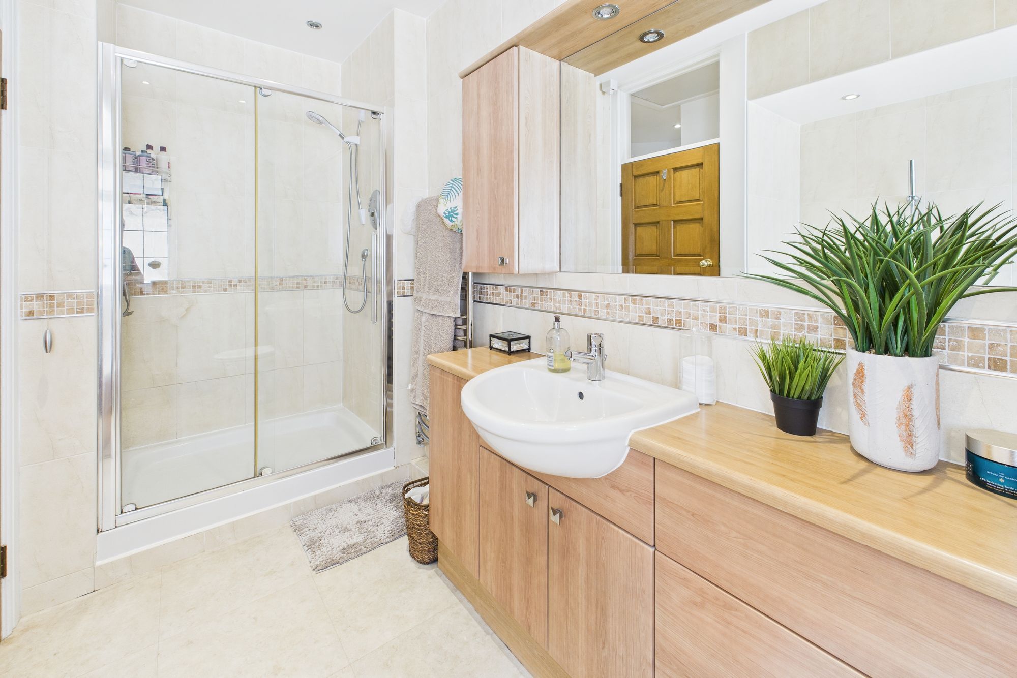 The property benefits from a modern, fully-tiled family bathroom with ample storage and elegant fittings.